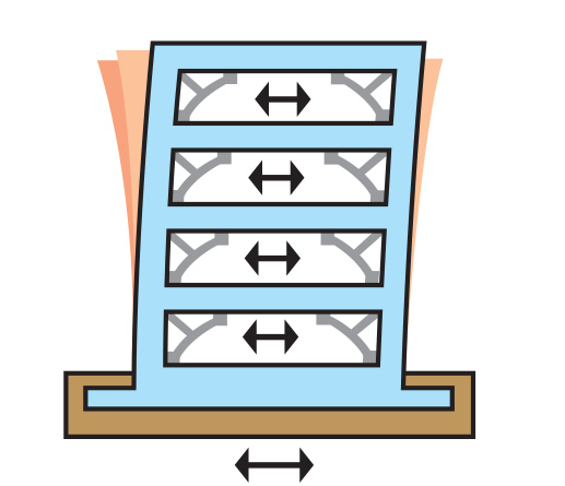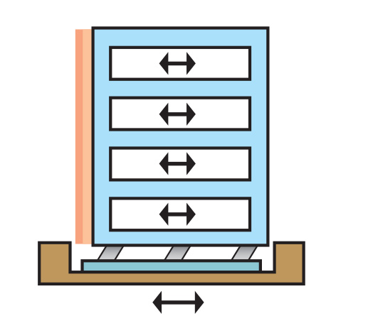 • Various types of steel dampers are installed in the building using Low Yield Point steel (HSA80) to control damage to the main beam and column.