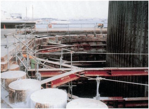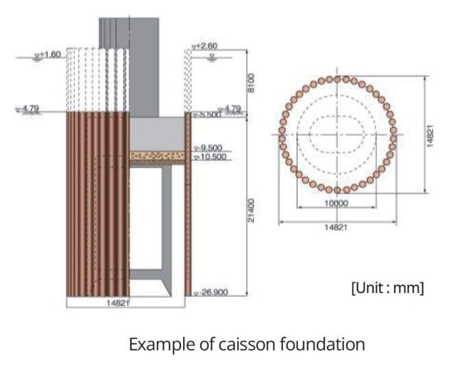– Reinforcement is simplified by applying steel pipe sheet pile foundations or additional piles to caisson and