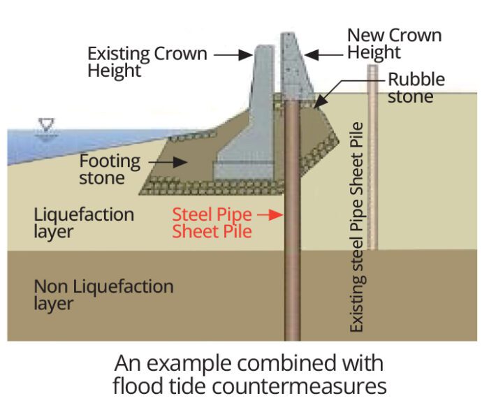• Method of controlling lateral flow of the ground by means of seismic retrofit applying steel material