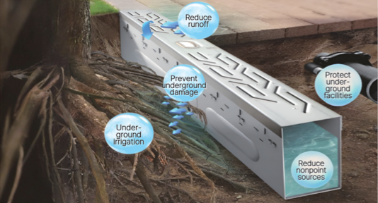 – PosMAC Barrier prevents root damage by storing and reusing rainwater.