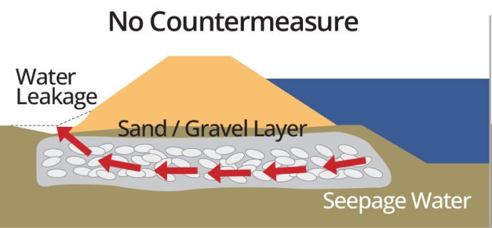 • It is a tenacious embankment reinforcement method which makes the time until the embankment collapse even a little longer in case of overflow of water.