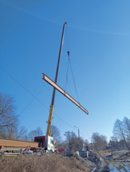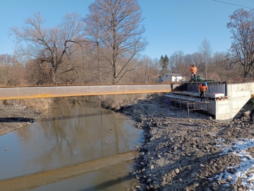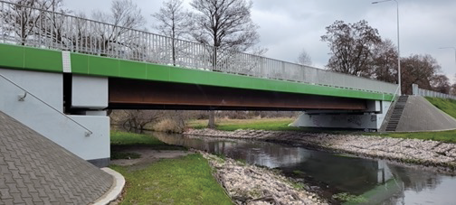 Quick erection of the road bridge DP-2277L in village Osmolice , Poland. Opened in 2022 using 4 girders with hot-rolled sections HE 900 B in Arcorox®460 (S460J2W+M) and XCarb® recycled and renewably produced. The bridge was opened 4 weeks before the planned deadline.