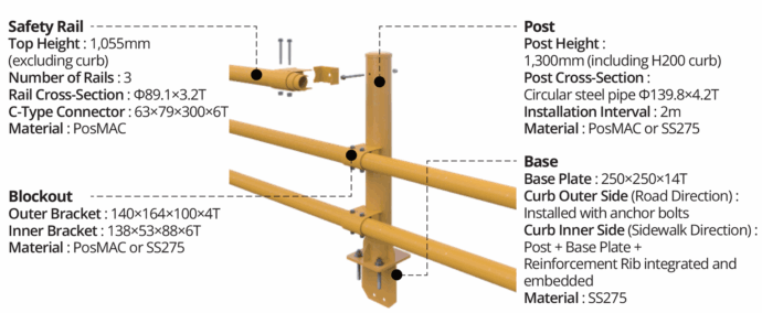 • Made with high-corrosion-resistant PosMAC steel, it ensures superior durability, strength, and cost efficiency. Its standardized design enables scalable, nationwide adoption as a sustainable safety solution.