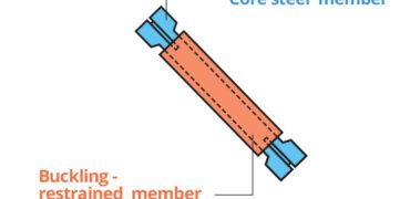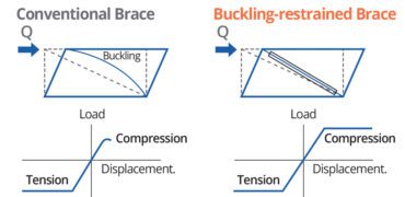 Buckling Restrained Brace assembled from core axial member and restraining concrete or hollow section maintains stable hysteretic characteristic and absorbs seismic force effectively, and reduces damages of main structural frame.