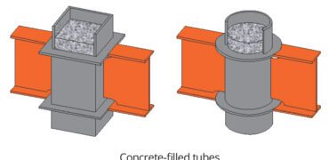 Concrete-Filled Tube structure is a structural framing comprised of concrete-filled tubes, CFTs, and steel beams.