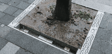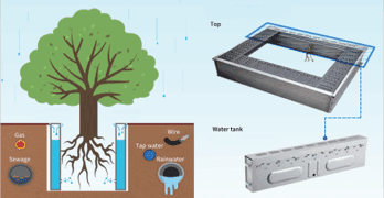The PosMAC BARRIER is a climate-adaptive urban landscaping solution that mitigates extreme temperature risks by protecting tree roots, reducing urban surface temperatures, and enabling water-efficient irrigation.
