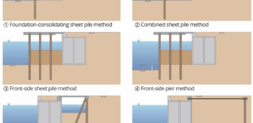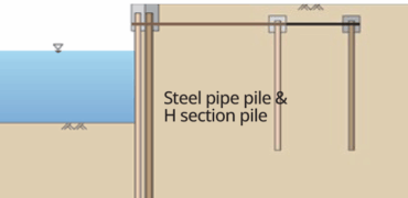 Construction method employing steel pipe piles and steel pipe sheet piles for increasing size of vessels (increase in port depth), improvement in seismic resistance, and renovation of aged structures.