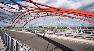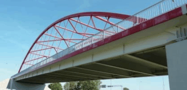 Net-arch bridges with cold-bent hot-rolled sections for the arches allow for a slender and aesthetical bridge design.