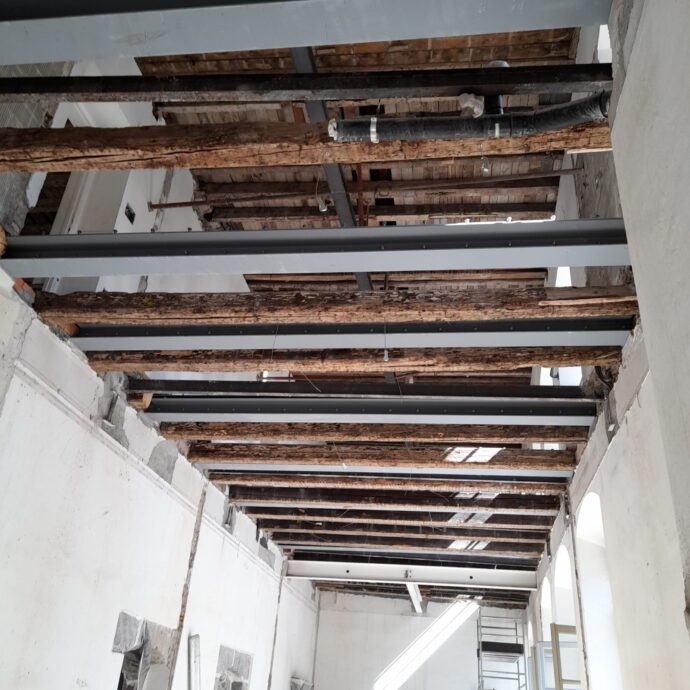 Historically, the building had a residential use and the floor system capacity was weakened during time by the decay of the mechanical properties of the timber beams it was supported by. The new use of the building (library and exhibition space) required a bearing capacity of loads in excess of 5kN/m2, as specified by the Italian’s technical rules for constructions.