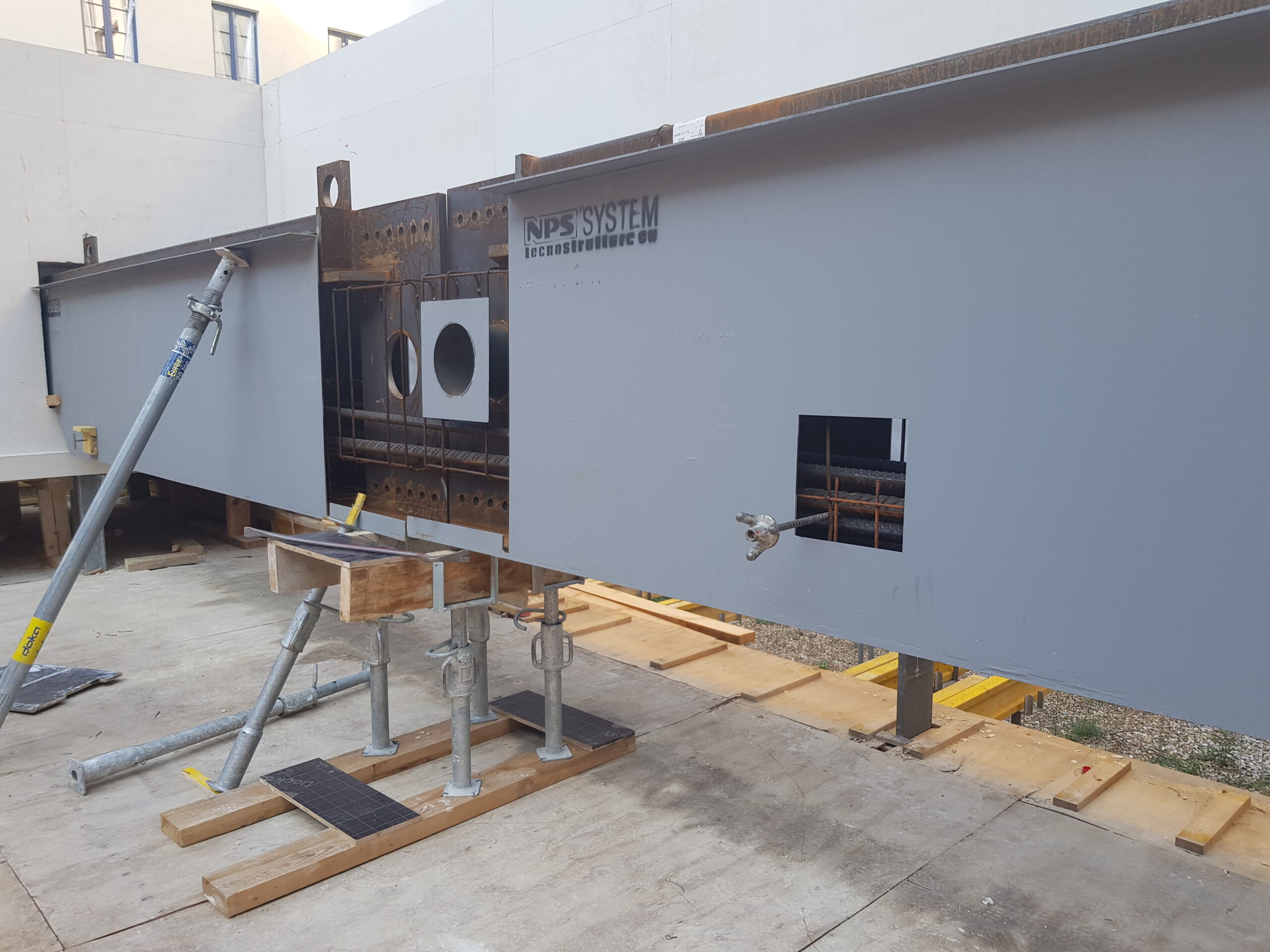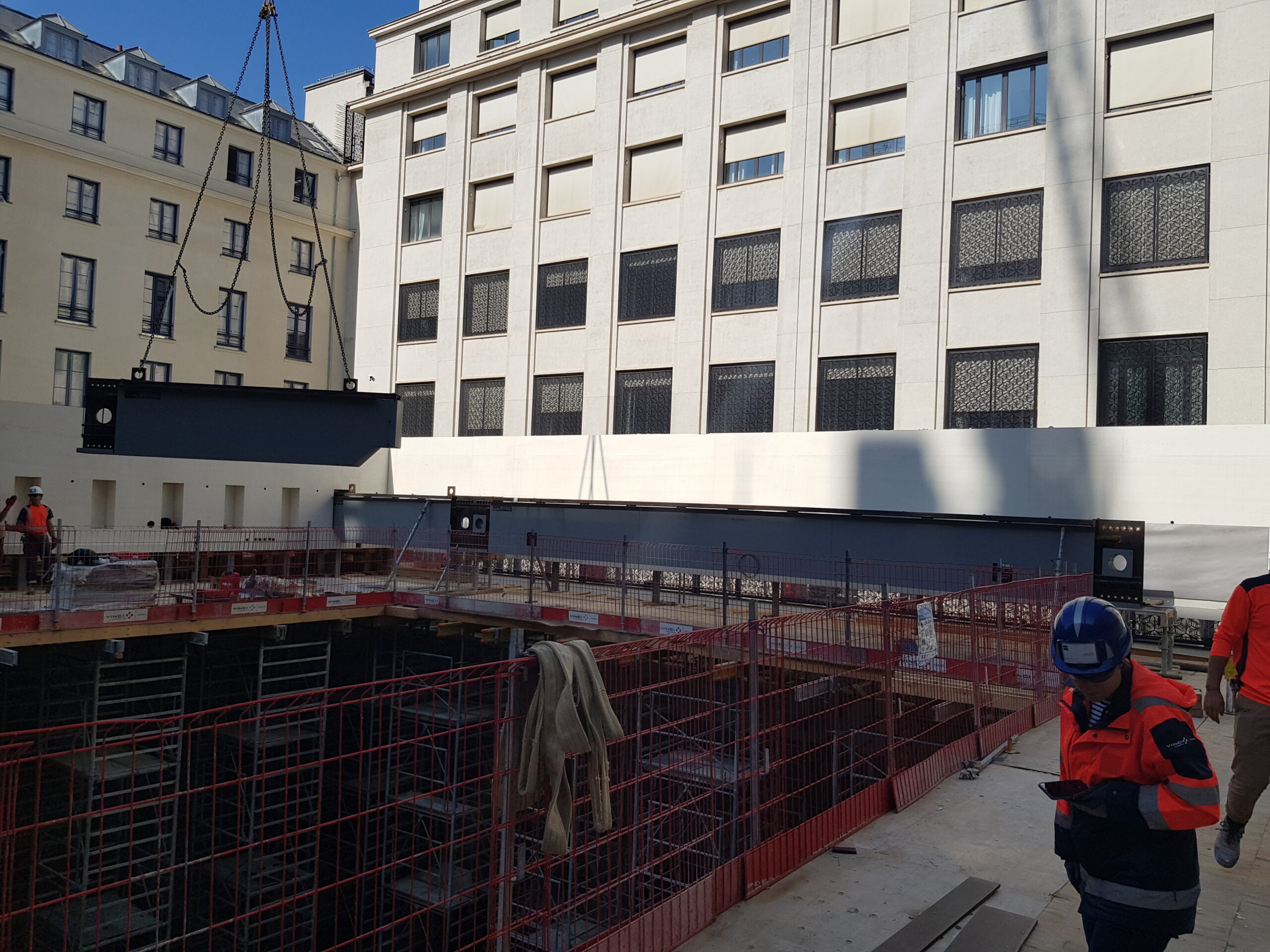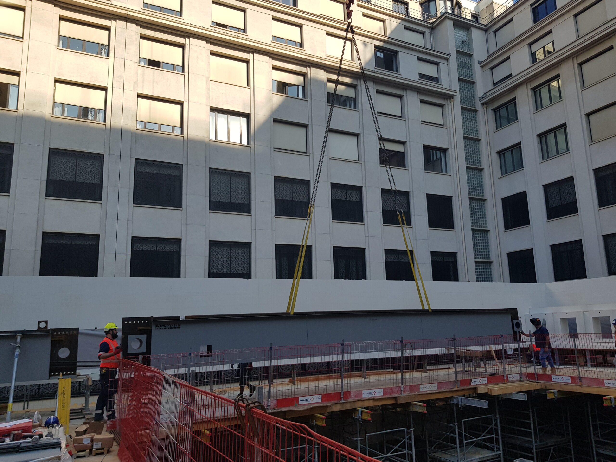 The fact that the beams have been assembled on site by simple bolting (no welding required) significantly facilitate the transportation through the congested streets of downtown Paris and also inside the construction site, where limited maneuverability of large elements was possible.