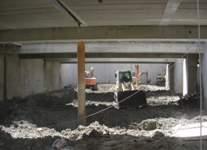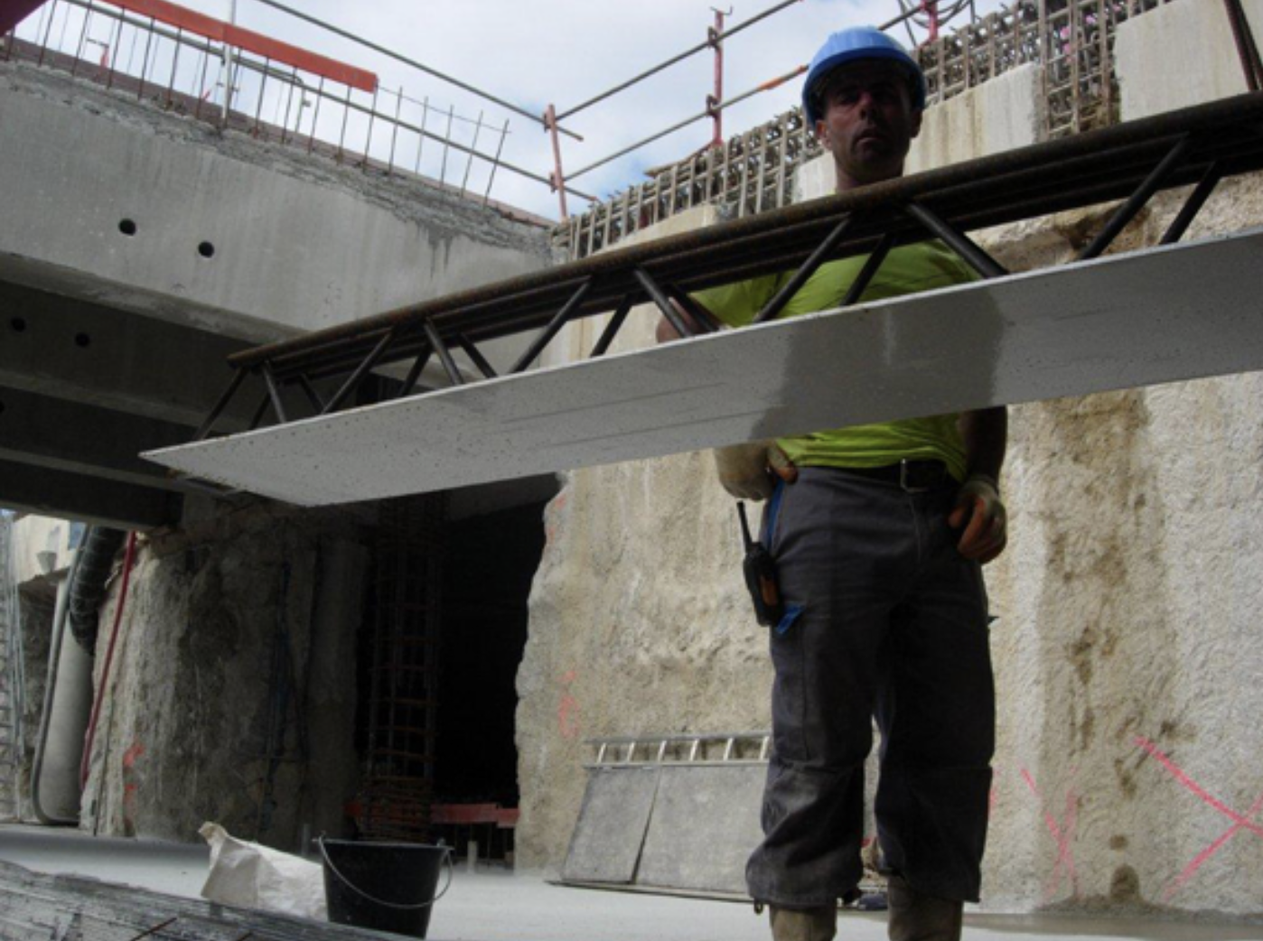 The use of the pre-fabricated composite beam – patented product by the company Tecnostrutture – allows the creation of underground spaces with a top-down construction method. The use of the specific solution allowed the construction of floor beams without the need to use temporary supporting elements for the props as this would have excluded the possibility to work on the levels below.