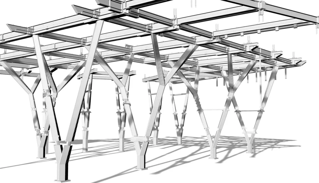 W-shaped columns: Composite was the most viable way to create such large columns are provide them with an inherent fire resistance.