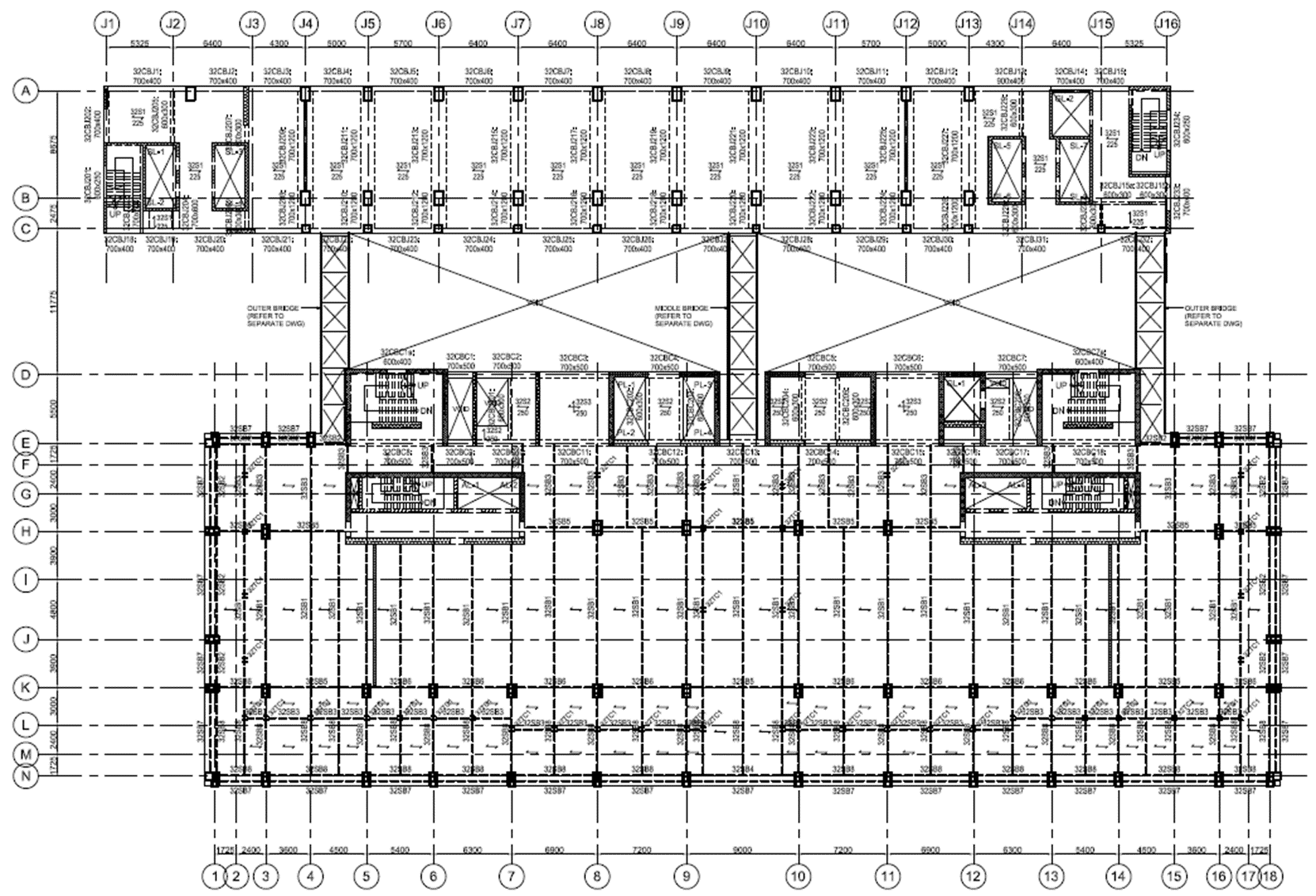 Office Tower needs to be braced by Court Tower through link bridges to keep lateral deflection within allowable limits