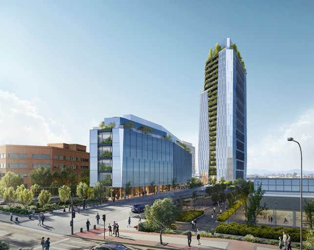 The 25 story office building Oria Tower stems from the rehabilitation of a former industrial site. The old industrial buildings will be restored and converted, and two additional office buildings are being added to the site. With construction works starting in late 2023 the project is expected to finished in about 2 years.