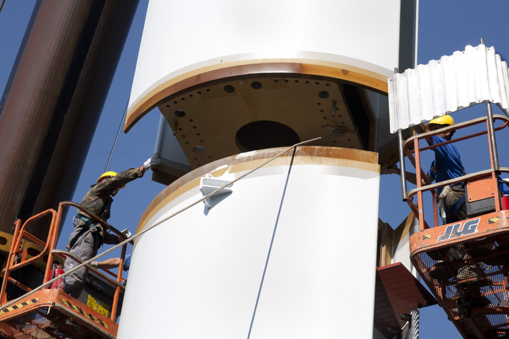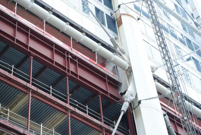 The composite solution was adopted to carry the vertical and lateral forces acting on the tower, while respecting Piano’s aspiration for a slim and de-materialized structure. The need for a composite solution is due to the large loads acting on the columns, as they carry the weight and lateral forces acting on all the 36 floors of the tower. In particular, the forces acting on the internal columns is transferred to the perimetral mega columns by means of two large trusses that weight over 2000t each.