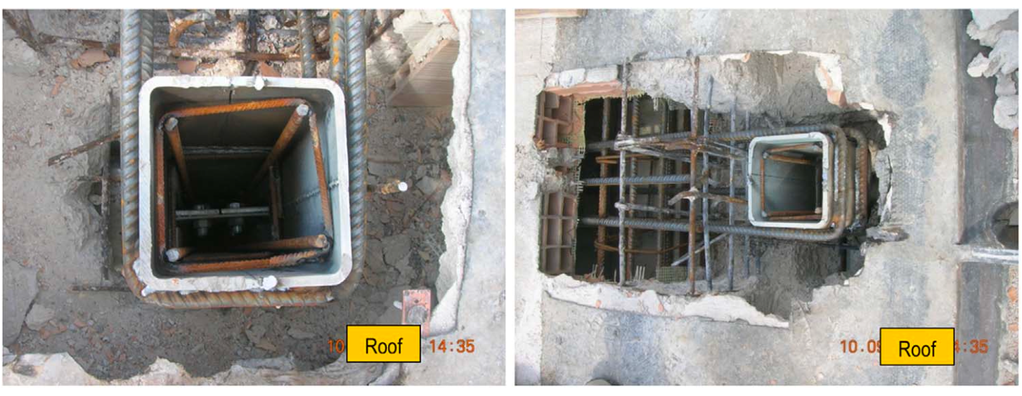 Alternative solutions have been considered, and composite construction was adopted due to the adaptability of steel as a building material to provide structural reinforcement of early RC concrete structures. Concrete was added inside the steel columns to provide the maximum load-carrying capacity and it was then decided to connect it with shear studs to provide the columns with wide hysteresis loops. Steel beams were preferred to concrete beams for their simpler construction. To facilitate the use of smaller construction equipment the primary beams have been designed as thin-walled “U” shaped sections, and part of the positive moment resistance was assigned to the concrete infill.
