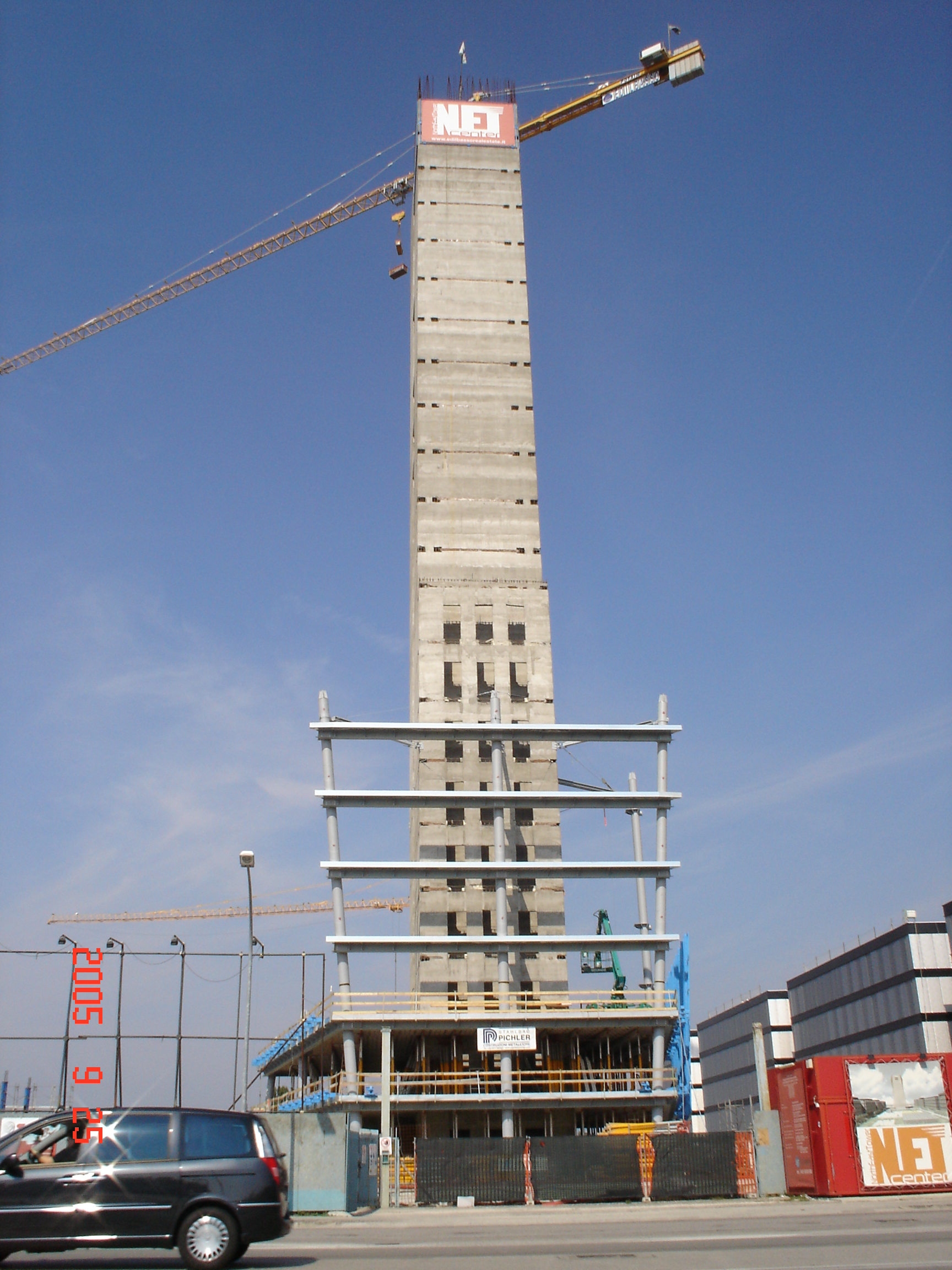 The building is a office tower, built from 2005 as part of a larger redevelopment project worth 150 millions of Euros in Padova, in the Veneto region. The tower is surrounded by a series of shorter (5 story) buildings used as office spaces.