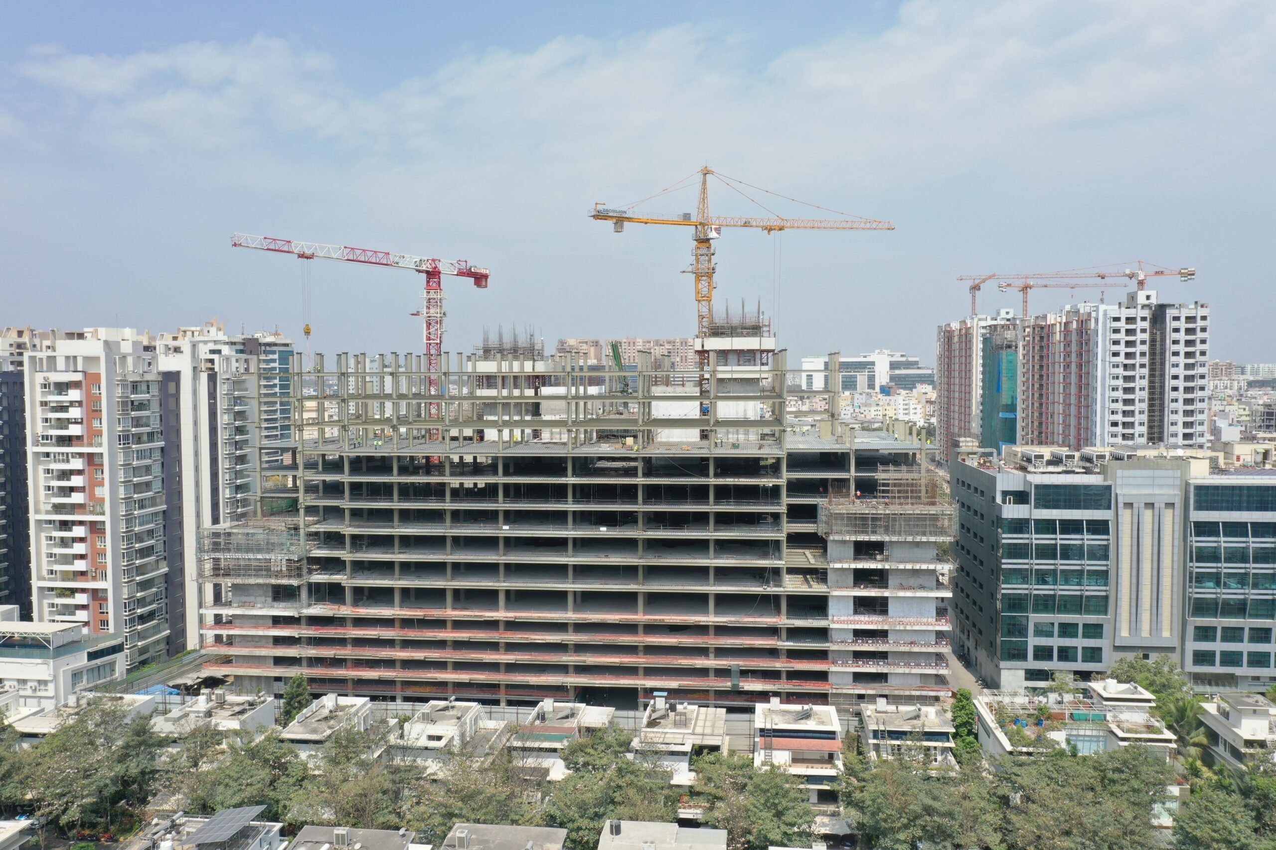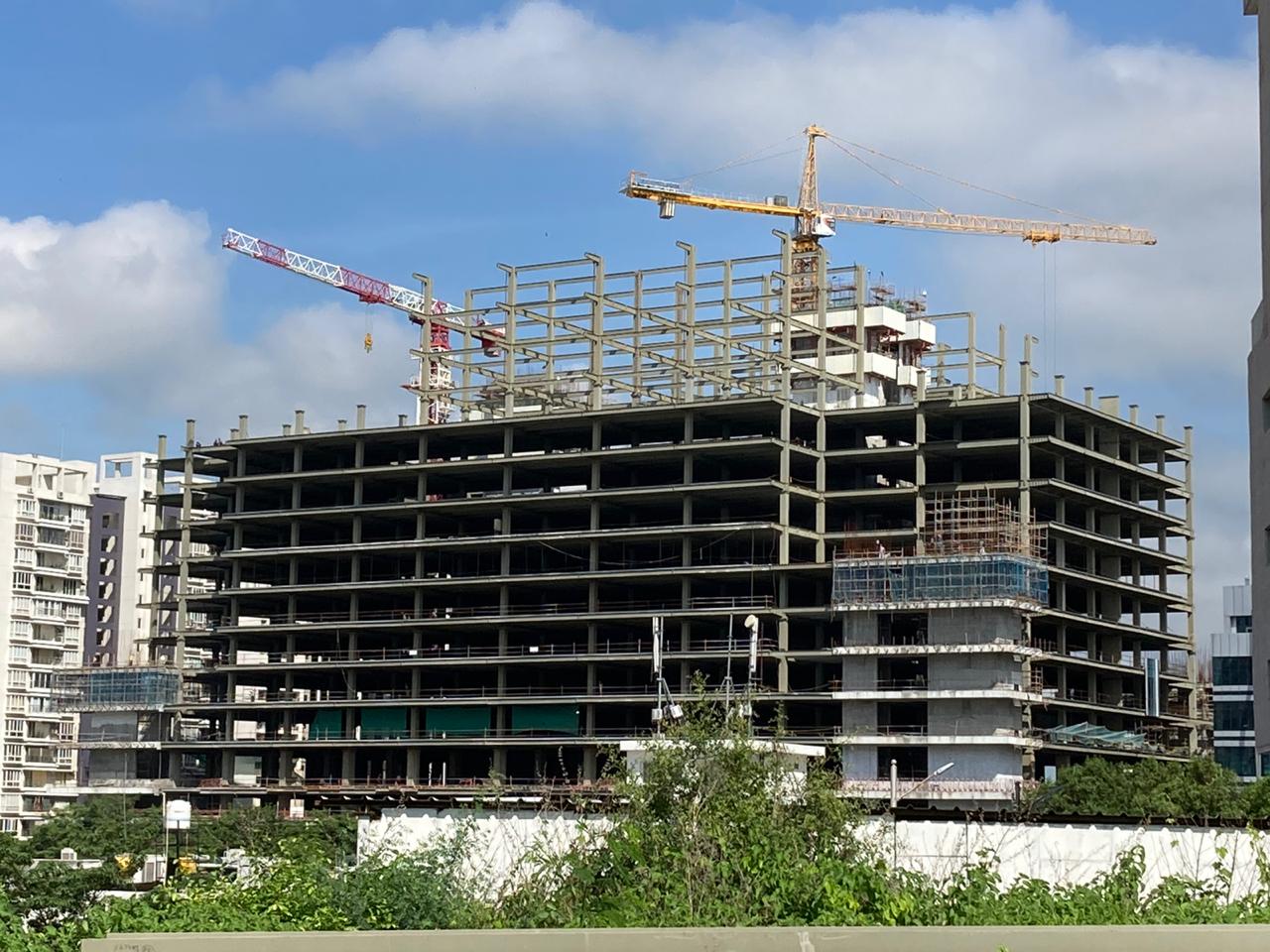 The building plot area was concise, and around was surrounded by residential apartment, which restricted the aerial movement in adjacent areas. This called for the Tower Cranes – 2 nos. to be installed inside the building.