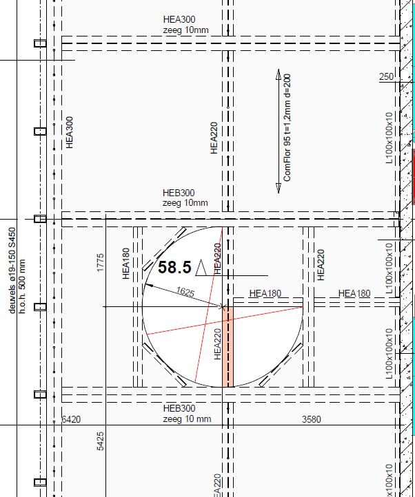 The construction solution is relatively simple: steel columns and beams, with a composite steel deck (corrugated sheet and compressive concrete layer. Interestingly, the entire construction was done (including façade and internal finishes before lifting-up the floor to allow construction of the lower level. The composite floor system is made with HEA300 in the main span and HEA220 in the secondary beam direction. The decking is made with a corrugated sheet of 1,2 mm and a depth of 200mm filled with C30/37 concrete.