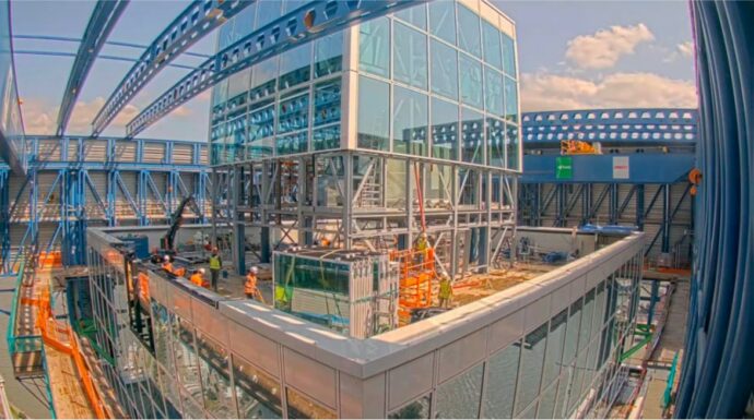 The building is the tallest residential tower in the BeNeLux region and it is entirely prefabricated making it the tallest prefab building in the world. The building was erected by creating a “factory in the sky” which is an enclosed steel structure that climbs up the building as it gets built, allowing a controlled and risk-free environment for the construction workers.