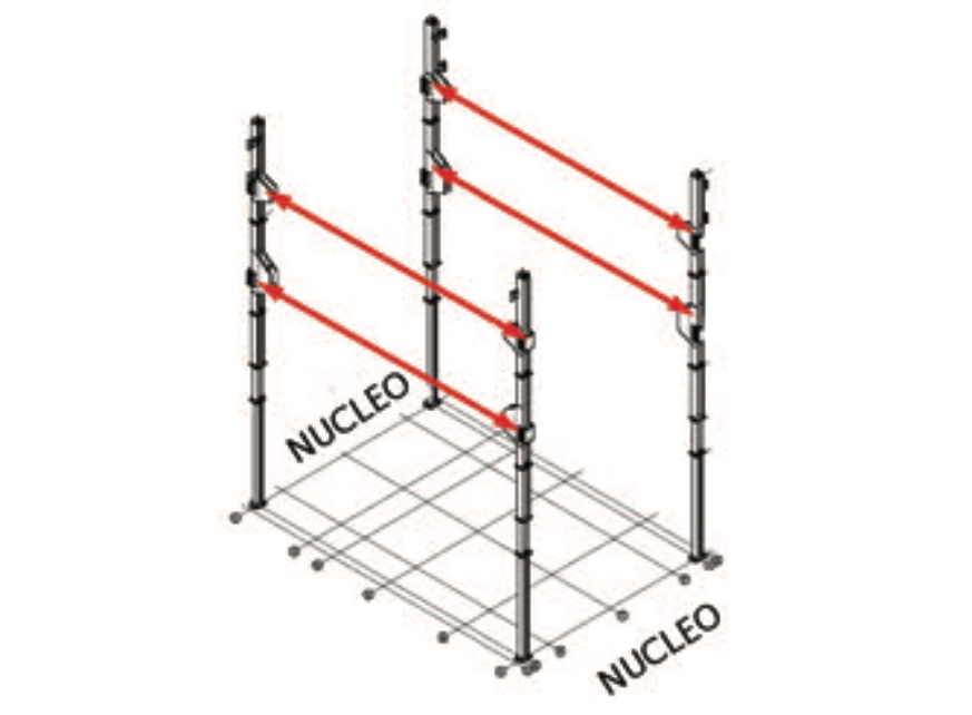 The composite solution was chosen to better dissipate the loads of each couple of trusses to the concrete cores. Steel columns are embedded in the concrete core and hold the connection plates with the trusses, then transferring the load homogenously by means of shear studs welded on both the web and flanges of the steel profiles.
