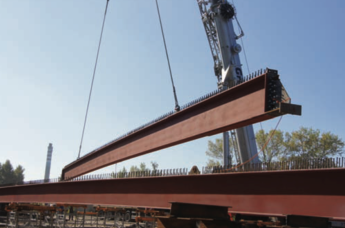 The traditional plated girders made with S355 steel allow for a geometric optimization of the steel beam, for instance by thickening the section where the bending moment reaches its maximum. Instead, the hot-rolled S460 beams used here have a constant geometry which simplifies significantly the fabrication phase and other on site operations. The use of prefabricated composite beams also allowed the erection of one span per week. The use of high-strength hot-rolled profiles allowed a saving of about 11% tonnage versus a conventional plated girder with S355 steel, and a similar saving on material costs. Similarly, as hot rolled profiles are usually more “compact” than welded girders per mass unit, a saving of 15-30% of surface is achieved, resulting in a reduction of about 3300square meters of surface to be protected against corrosion, providing both an upfront saving and a significant saving during the maintenance activities required throughout the life of the bridge.