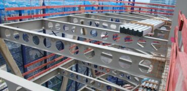 Multiple types of steel products, including composite columns (concrete filled tubes) and composite beams (thin-walled steel profiles with concrete infill) were used to retrofit the structural system of an elementary school that was deemed unsafe according to the new code requirements that came into force in Italy in 2003.